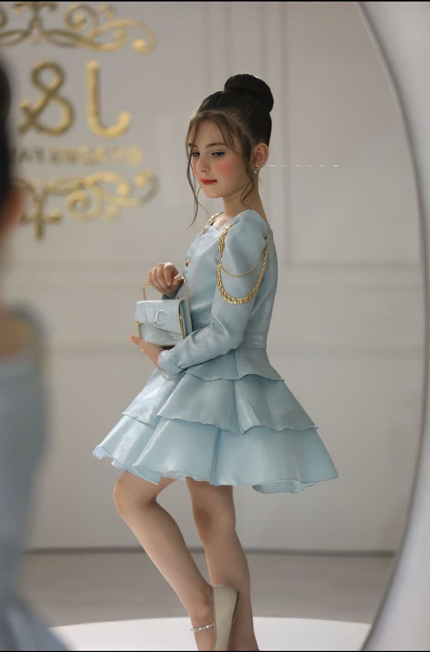 فستاان بحمالات سلسله مع جاكيت بسلالسل على الكتف وحقيبة